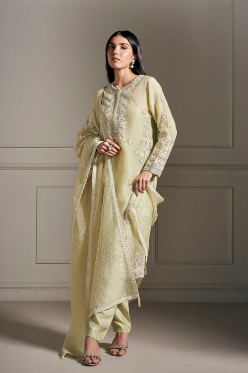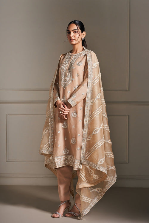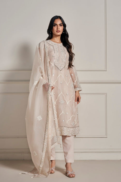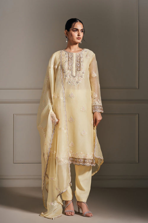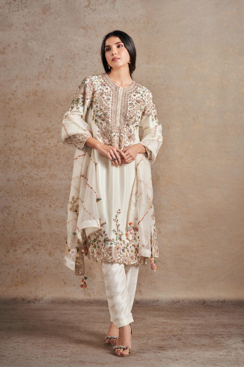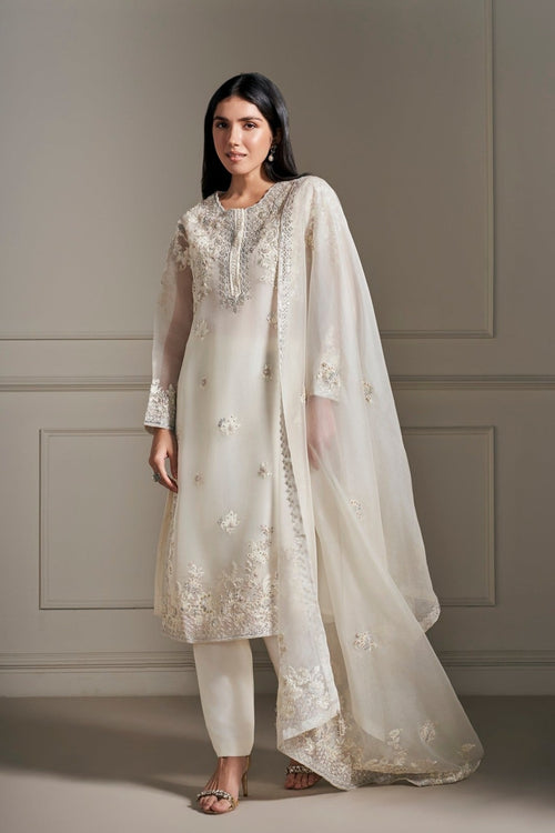 Elegant Ivory Resham & Dori Handcrafted Kurta Ensemble