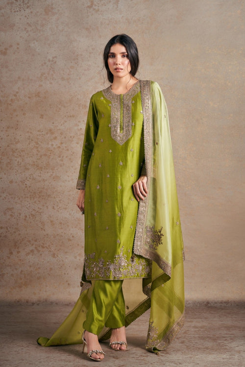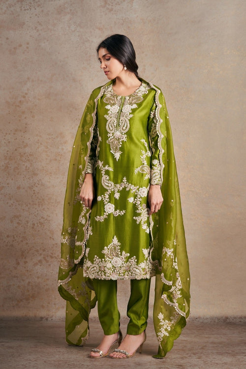Sophisticated Emerald Silk Hand Embellished Kurta Set