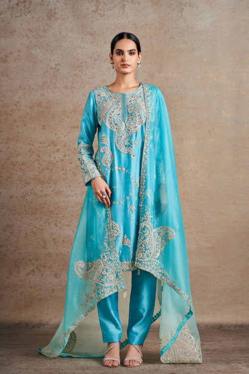 Sophisticated Turquoise Blue Hand Embellished Kurta Set